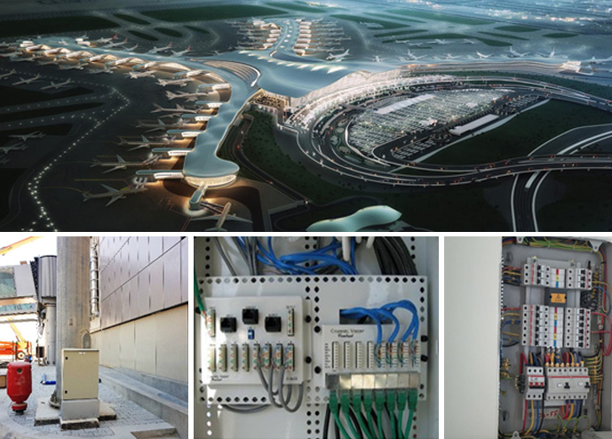 The Scope of our works in this project are Supply, Installation, and Testing & Commissioning of Electrical and Telephone works such as MDB, SMDB, FDB, Capacitor Bank, Consumer Unit, LV cables, Isolators, Switches and Sockets.Conceived as a gateway to Abu Dhabi, the Terminal Building is raised up from the road level giving the appearance of sitting on its own plateau. In this context the building is the dominant and most impressive structure on the horizon with its dynamic profile silhouetted against the sky. At night the building’s illuminated interior will be visible from the highway over 1,500 meters away.